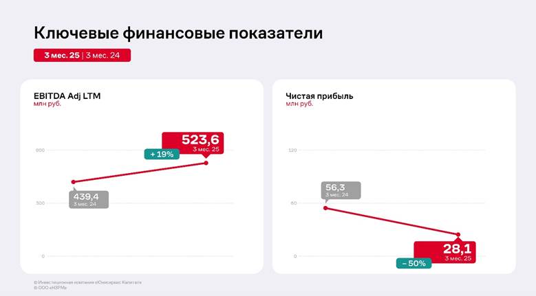 Собственный капитал на 31.03.2025 г. вырос на 37,3% к АППГ и составил 729,8 млн руб., он продолжает увеличиваться за счёт роста нераспределенной прибыли: вся чистая прибыль компании ежеквартально реинвестируется в развитие.